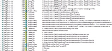 Sysinternals’ Procmon capture of AgentTesla trying to steal browser data