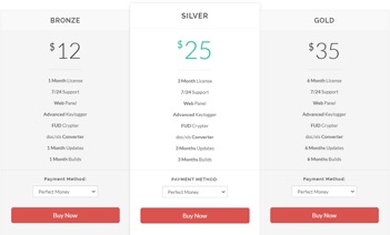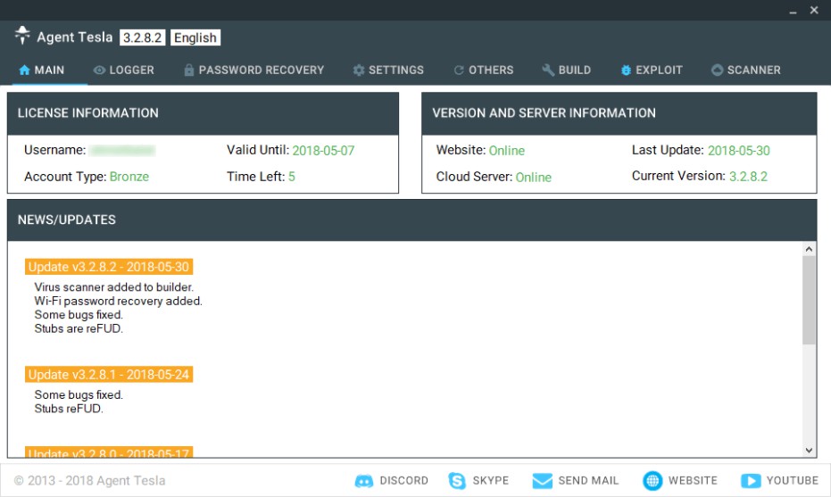 Price of AgentTesla as advertised in agenttesla.com in 2018