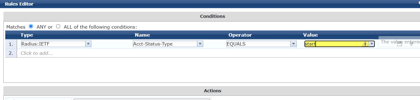 This sounds ideal, but when I try to set up an enforcement policy rule to match on the RADIUS:Acct-Status-Type I can't see any option that fits, the RADIUS attributes don't seem to be available at all :(
