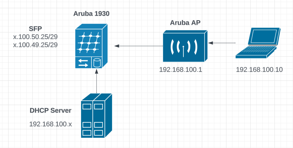 Aruba 1930 with 2xsfp fibre connections to the internet. with a dhcp server and a bunch of aps