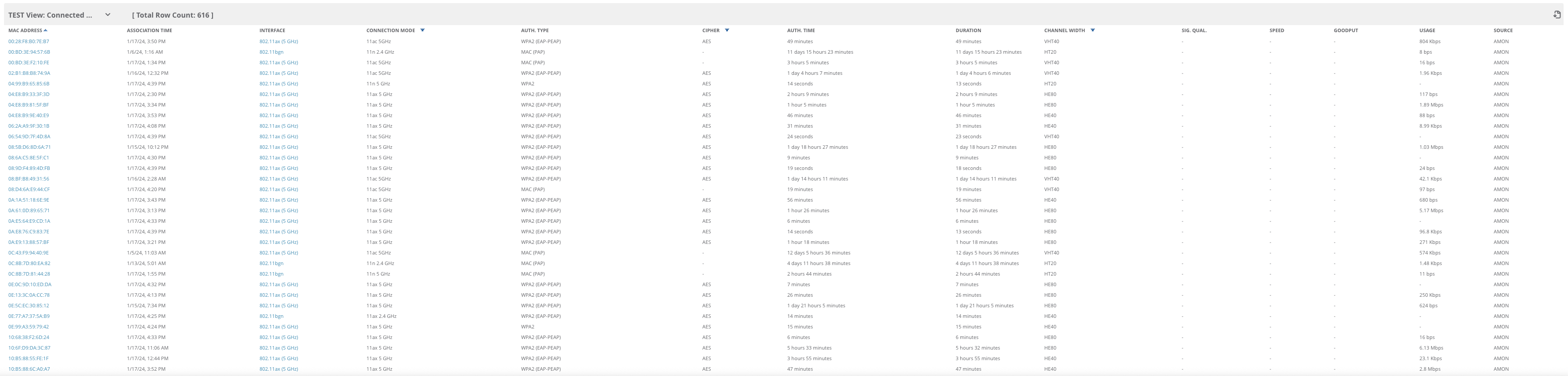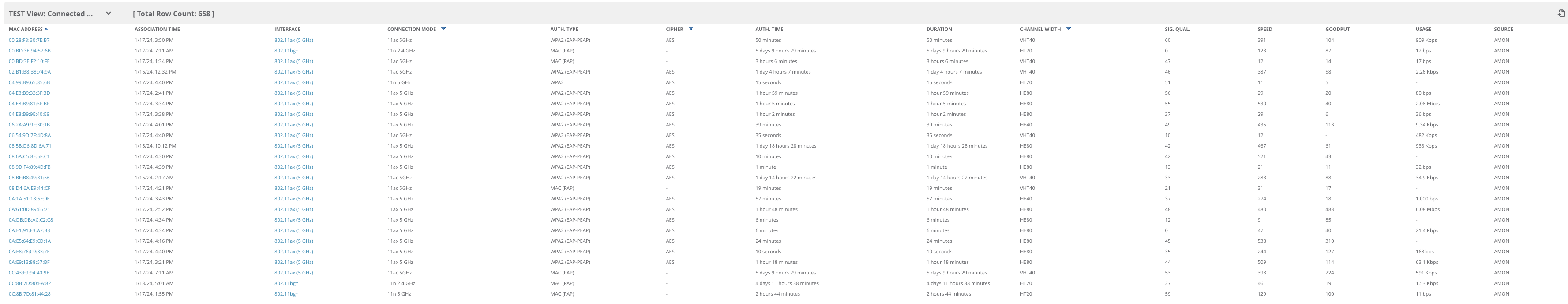 I can see some differences in the Client View table across my 2 Airwave instances. Namely, the AMP using the modified-amp profile (with the extra parameters enabled), displays a Client's Signal Quality, Speed, and Goodput while the one without those parameters does not.