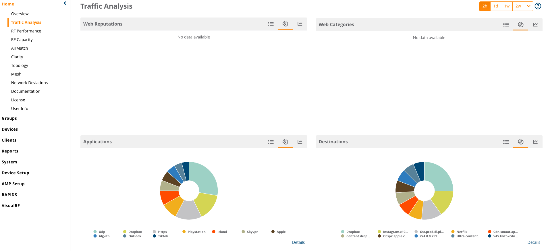 I suspect that enabling AP Application stats would display a breakdown of Applications in Traffic Analysis... I believe Web Reputations now requires an additional license.