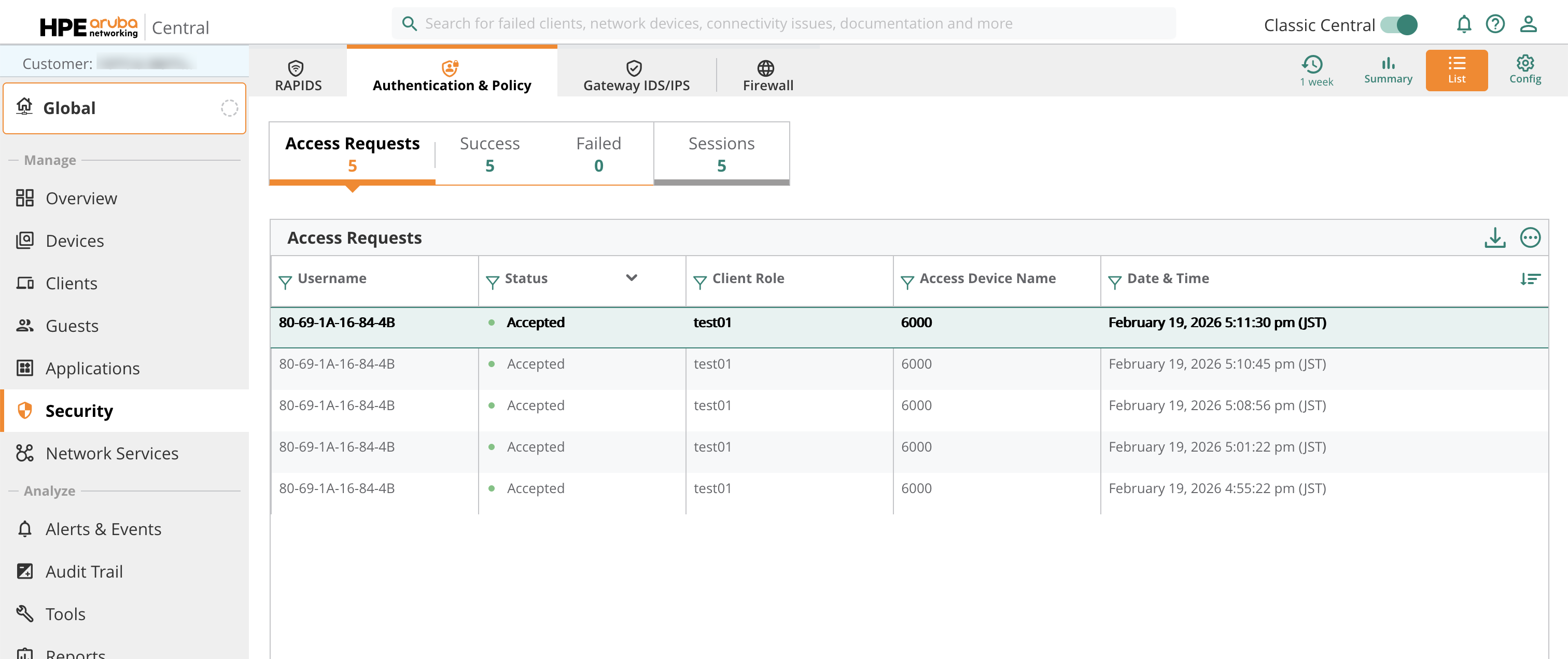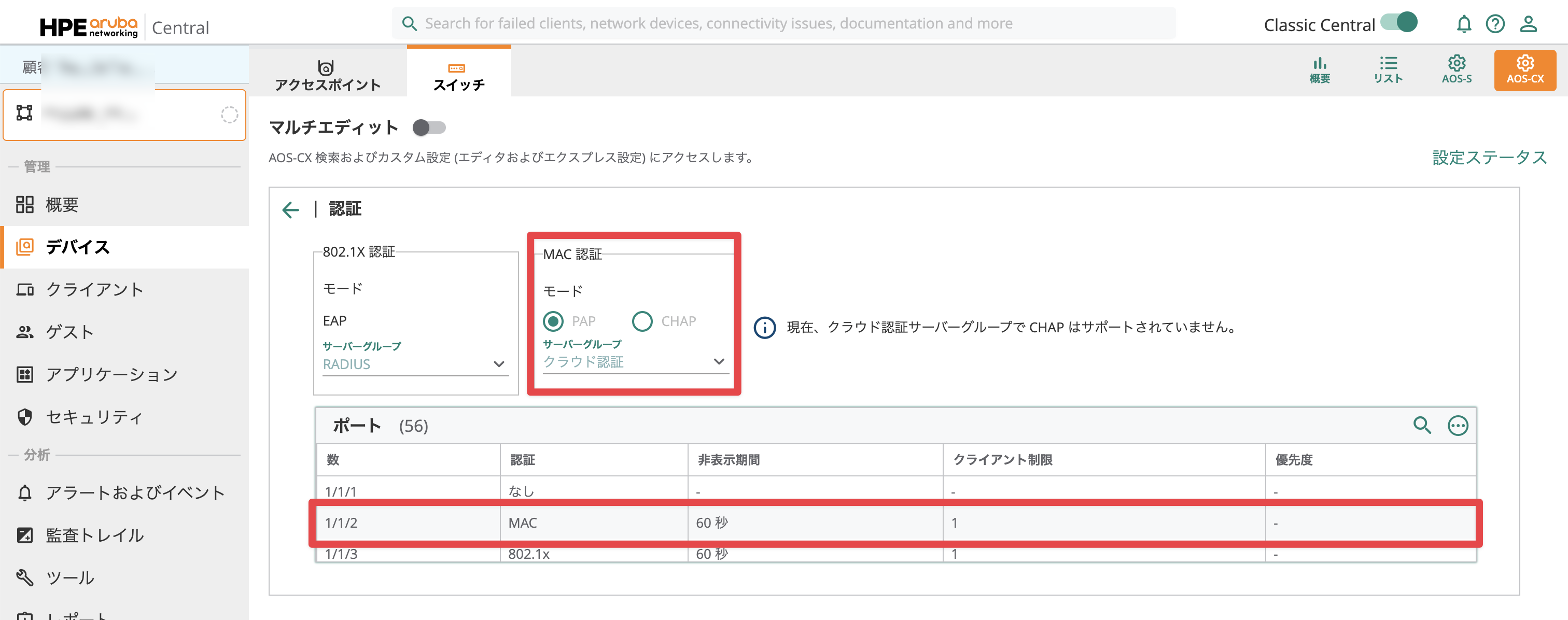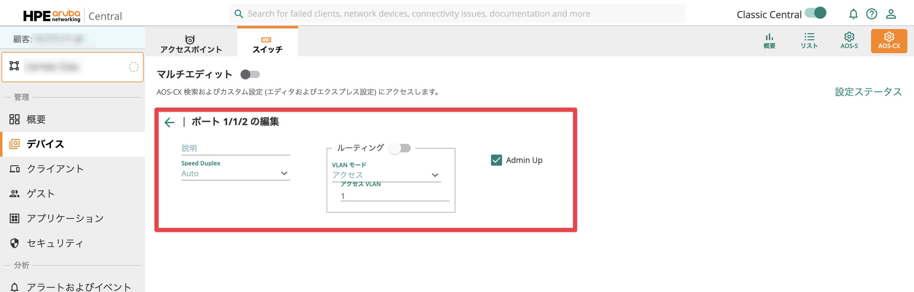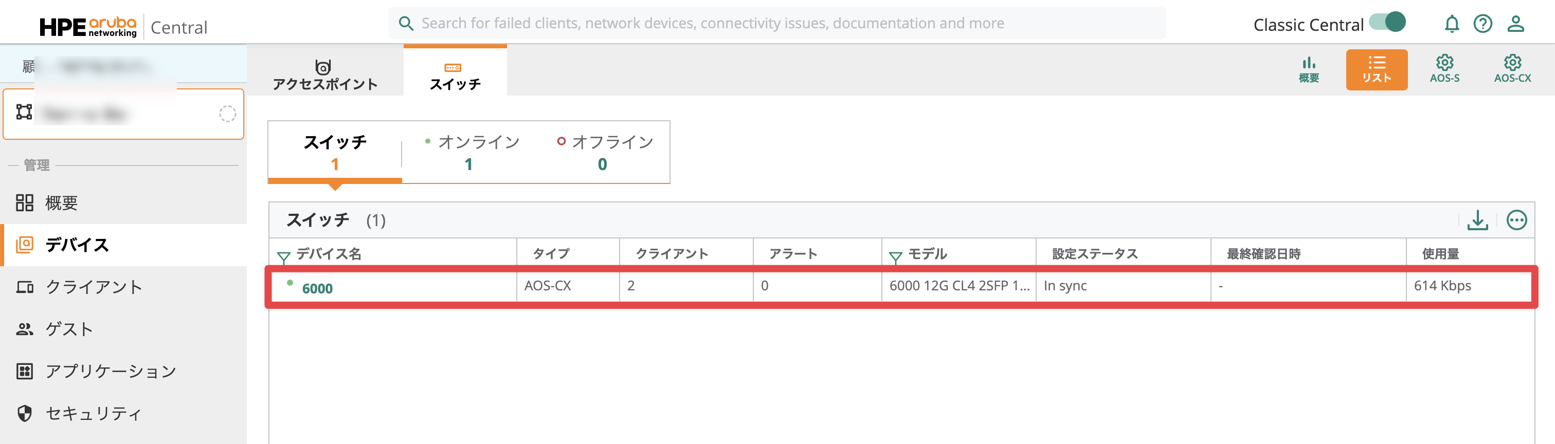 - Aruba CX スイッチ(6000)をAruba Central上で管理