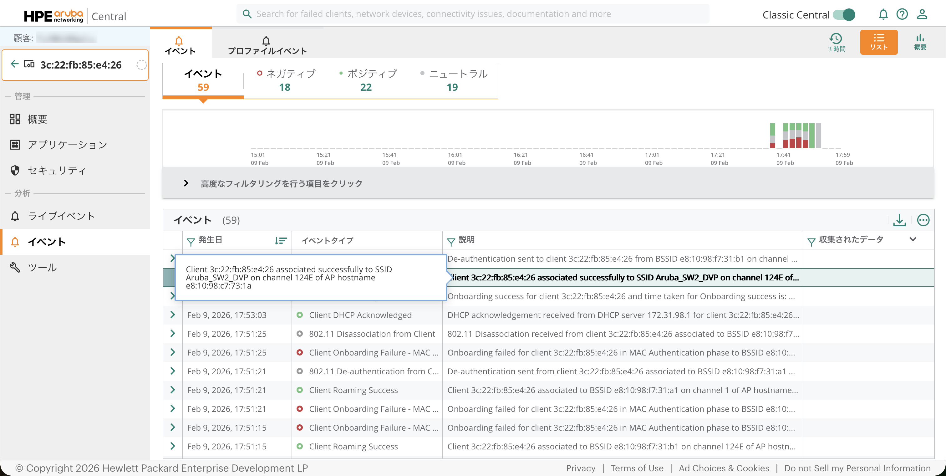 加えて質問なのですが、有線LAN接続時のタイムスタンプや認証可否、クライアントMACなどのイベント情報はどこから取得することが可能でしょうか。