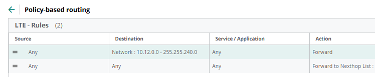 In the PBR policies list there is 1 policy which says "forward" traffic and 2 policy which says "forward to next-hop-list" which is my VPNC cluster.