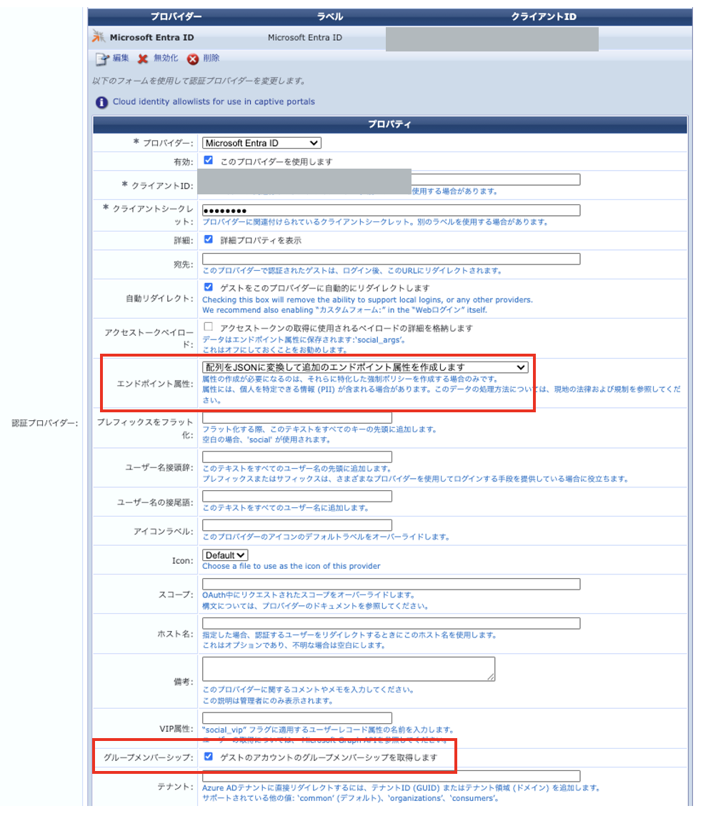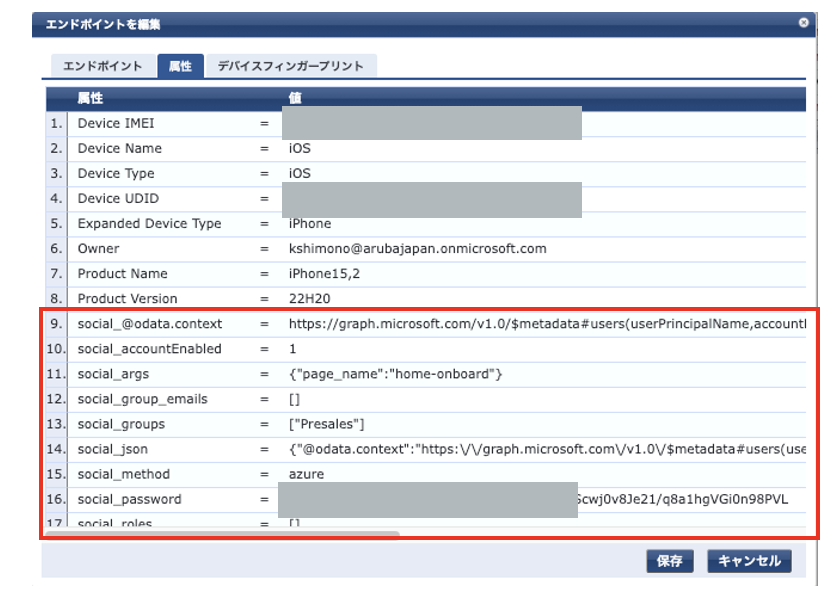 上記設定をすると、OnboardでEntra IDにログインすると、Endpointの属性に、「social_xxx」で書き込まれていることが確認できます。