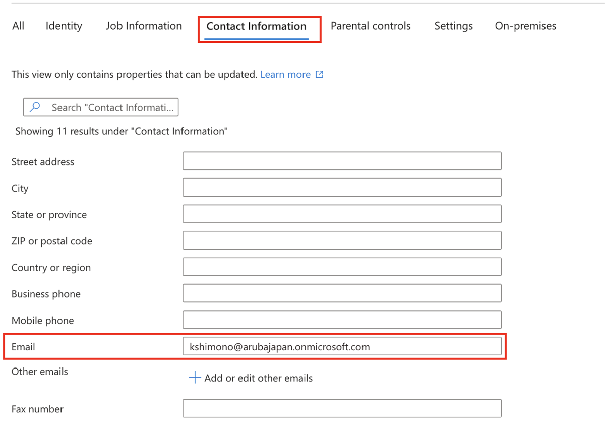 a) Entra IDでユーザのコンタクト情報のEmail欄にUser IDを正しく入力する