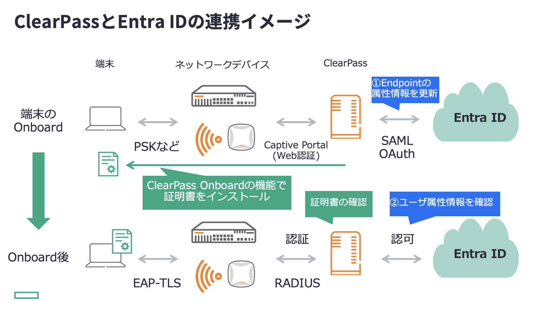 以前、ClearPassとEntra ID(当時のAzure AD)の連携について記載しましたが、実際の設定でいくつかご相談を頂いたので、Tipsとして紹介します。