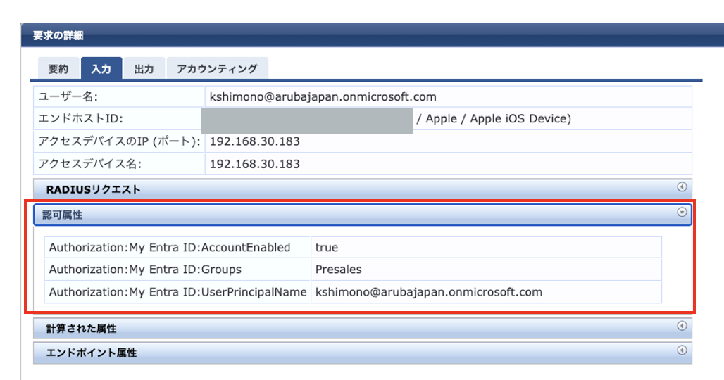 2. 802.1Xの認証時に、認可でEntra IDに問い合わせてユーザ属性情報を確認する