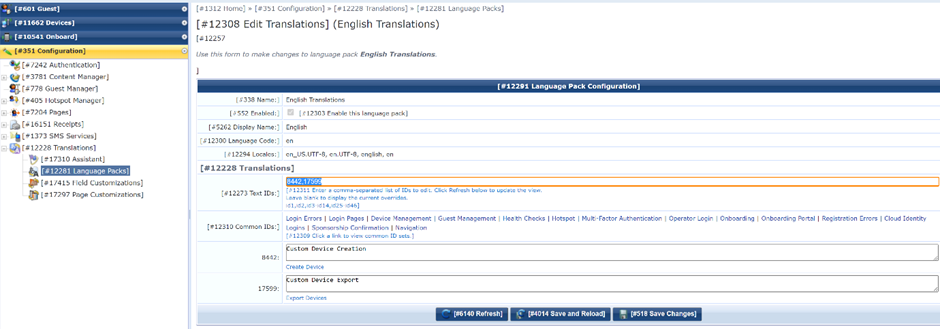 Click Refresh, and the textboxes will appear for all the given Text ID's. Enter your custom text and Save.
