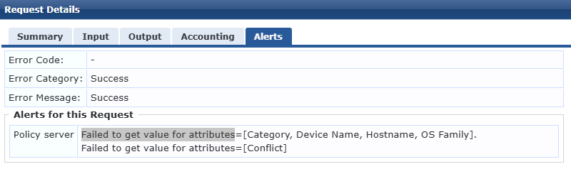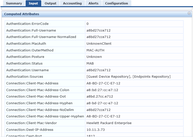 Subject: Clearpass MAC Auth - Failed to get value for attributes