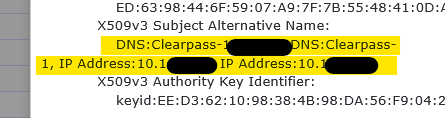 Your RADIUS certificate really shouldn't be different on each appliance, nor should there be an IP address in the SAN. RADIUS certificate should be a standard single host type of certificate, preferably with a CN/Subject/FQDN that isn't DNS resolvable anywhere on the network. Use the same certificate on every appliance.