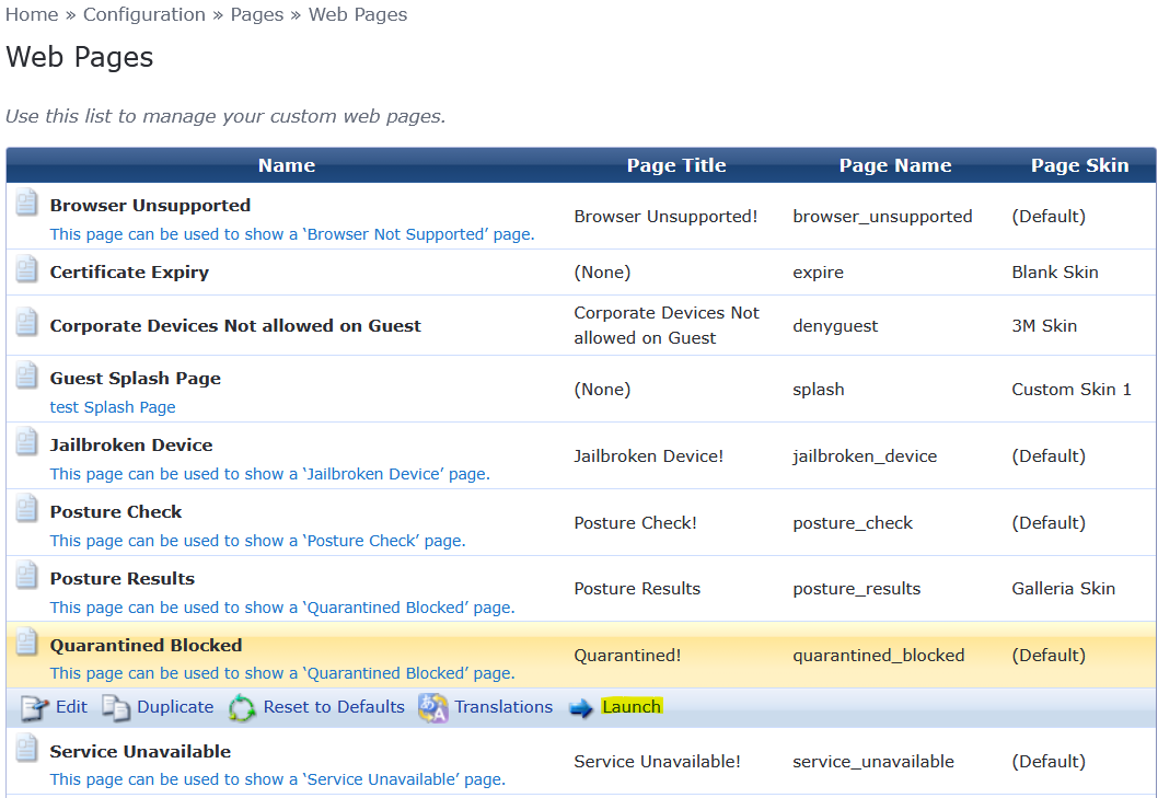 I went into Guest > Configuration > Web Pages > Posture Results to look for the url in there and I do not see it.