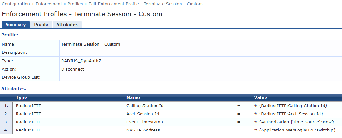 I have an enforcement profile that is supposed to send a RFC3576 Disconnect-Request: