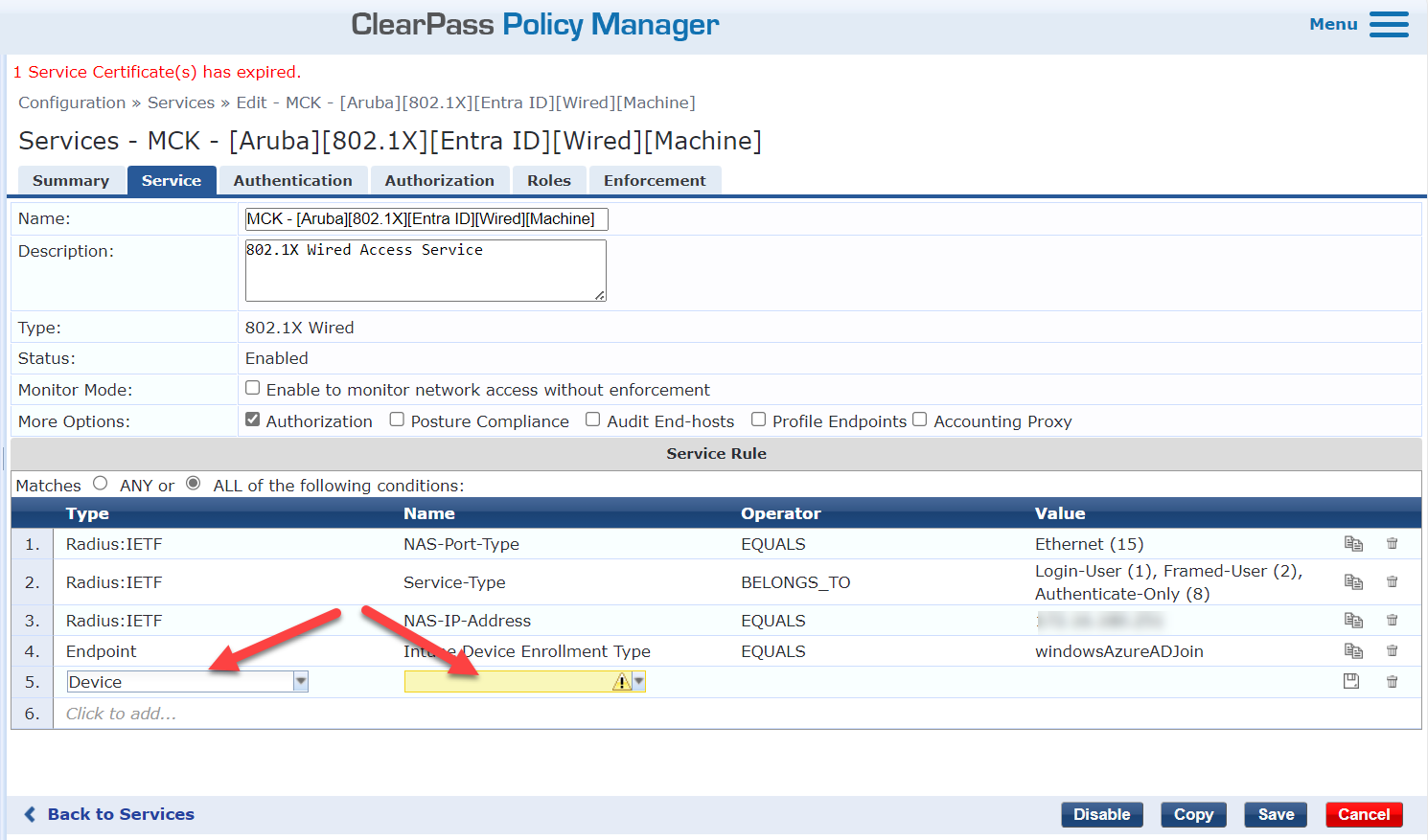 Subject: Creating a Service in ClearPass 6.11 for AADJ machine authentication.
