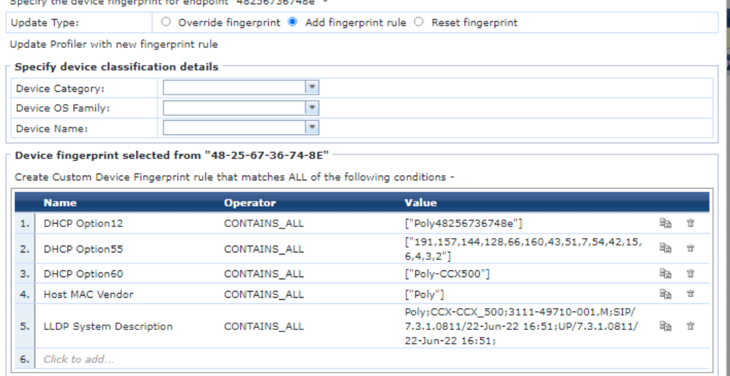 Anyway, plan is to have a fingerprint for a CCX500 Polycom device rather than a generic polycom ip phone. device