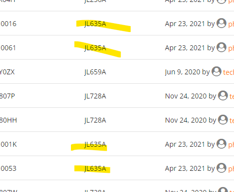 Someone here said before that the JL625A is the 'bundle part number' that includes the fans, but the switch reports part JL635A. I'm guessing that's why it isn't matching up.