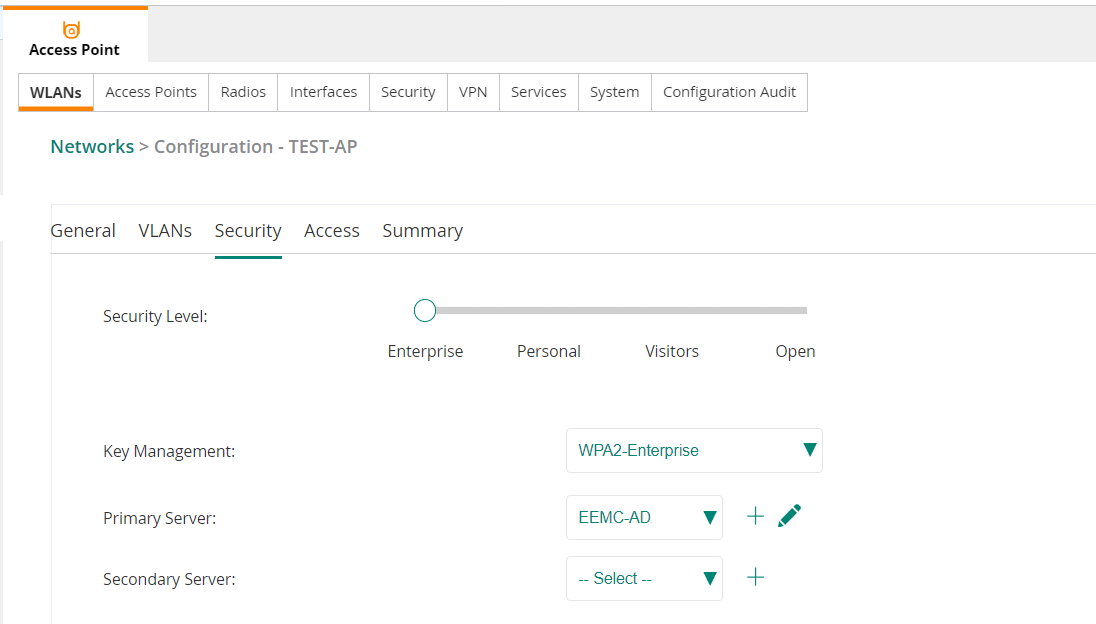 I am trying to set up ldap authentication (NO RADIUS) for wlan security using AD username and password. The user should be able to connect any devices (personal and work). After setting this up, I am able to sign in using Android phone (used Don't validate CA option). But I am not able to sign in to windows machines. Please see attached. The IAP is managed by Aruba Central. Please help me in setting up this. Requirement is to have the user connect to any of his gadgets (android, iphone, laptops etc.) using just his AD username and password.