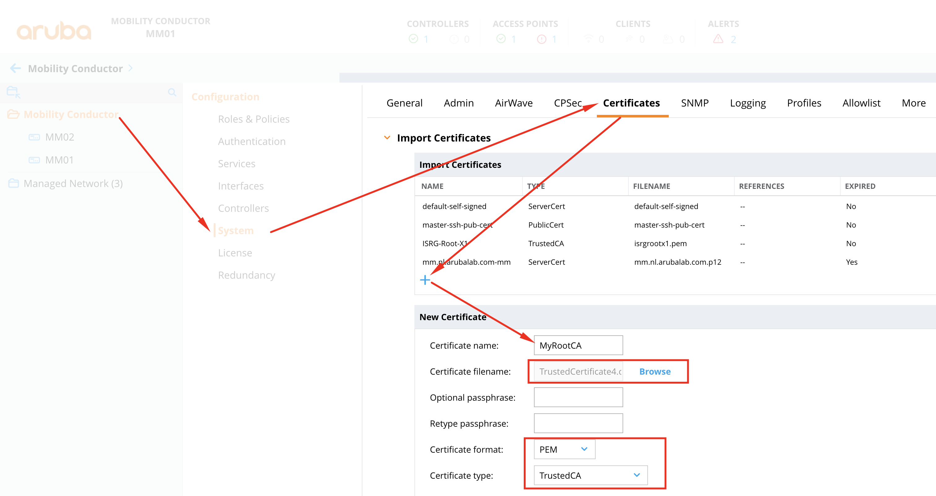 Thanks for the detailed response, I suspected something with certificates but this was a very detailed response. If the gateway is managed through Aruba central, how do I get that certificate on the box? Would that be through the web-gui of the gateway itself of through Aruba central? In central I had troubles finding how to do this.