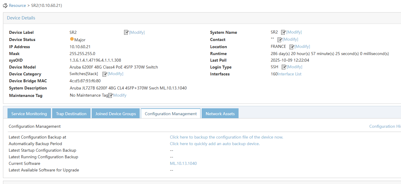 I recently added an Aruba 6200F switch to my IMC. I modified the device model binding in IMC to ensure the switch is correctly recognized, as it was previously misbound via the OID.