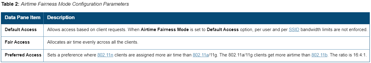I think airtime fairness was more relevant when the client traffic mix had sizeable 11b clients, but for env these days where most of the clients wifi5/6/6E, airtime fairness would have very little impact.