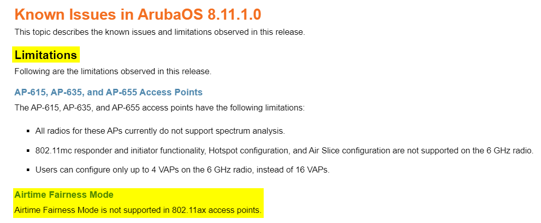 A bug, first mentioned in release notes of year 2021, not in release notes from years 2019 and 2020 when Arubanetworks started selling its first 802.11ax access points.