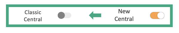 移行直後も、トグルで「Classic Central」へ戻すことは可能です。これにより、既存の運用スタイルや設定手順を継続したい場合も柔軟に対応できます。