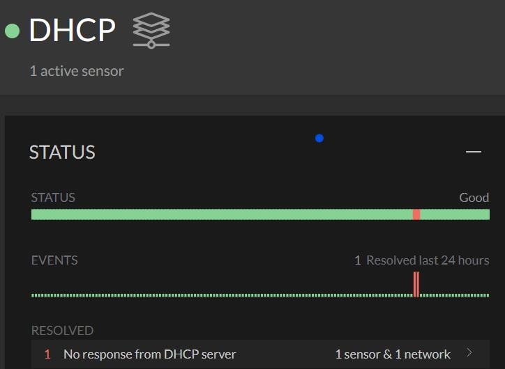 It just happened that I pick the one with two consecutive reds which is not very often as you can see in my last 30 days DHCP status. This sensor monitoring the wireless mesh point, so some occasions of drop DHCP, DNS, ... are expected. My problem is the alert triggers on every red.