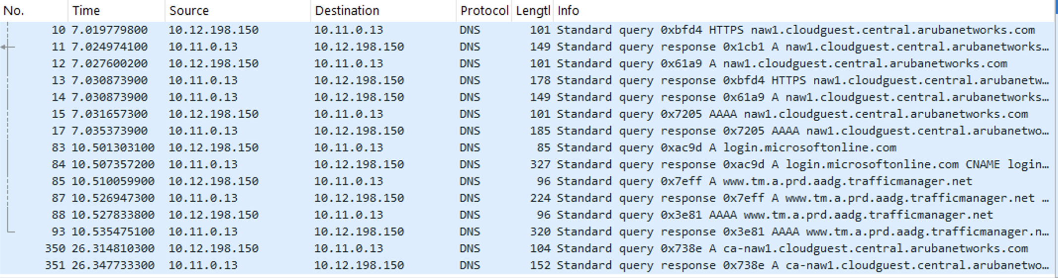 We made a capture after that on the device itself. This revealed that there also was done a dns resolve for "crl.comodoca.com".