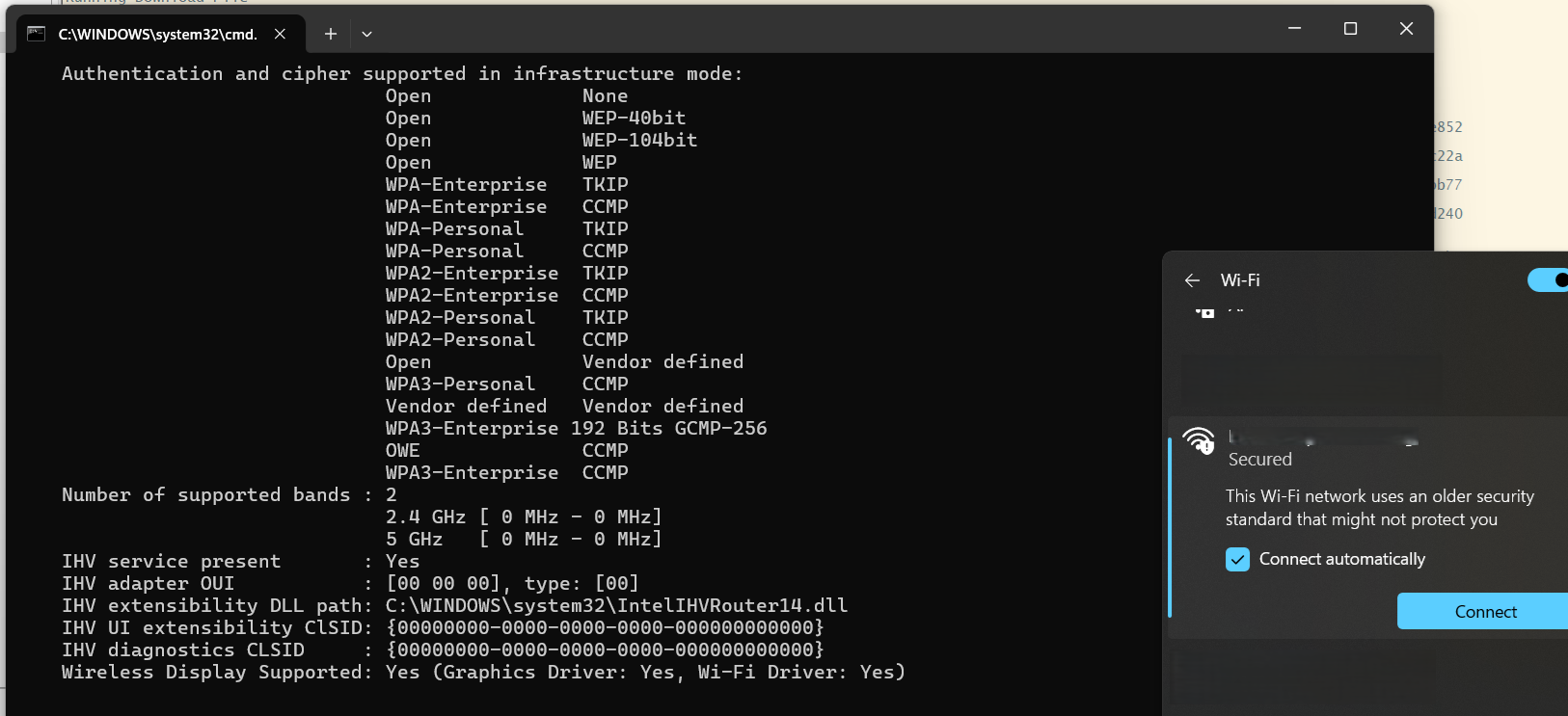 So this Snap means that my PC does not support wpa3-aes-gcm-256 encryption?